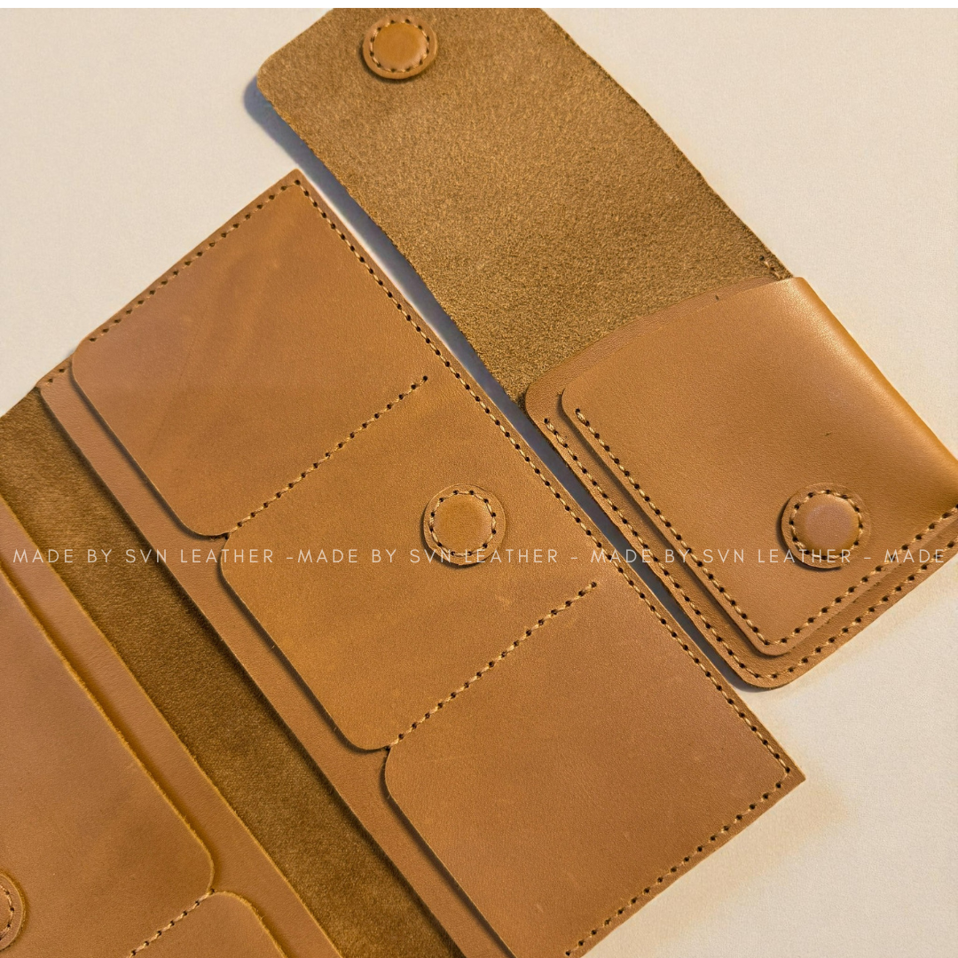 Combo Ví Da Nâu Handmade Độc Quyền – Ví Cầm Tay Lớn & Ví Nhỏ Tiện Dụng