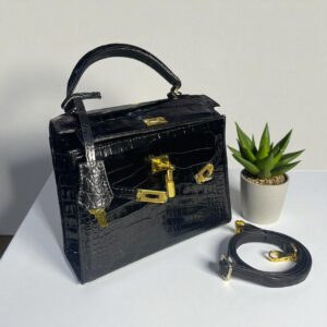 Túi Xách Da Cá Sấu Cao Cấp Màu Đen Huyền Bí Form Kelly Size 22